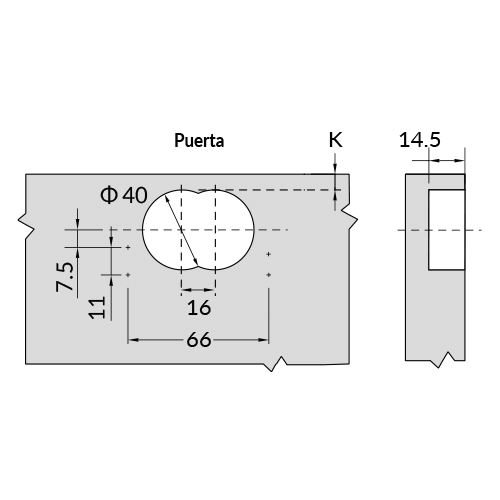 – Diseño de mecanizado con doble cazoleta de 40 mm.