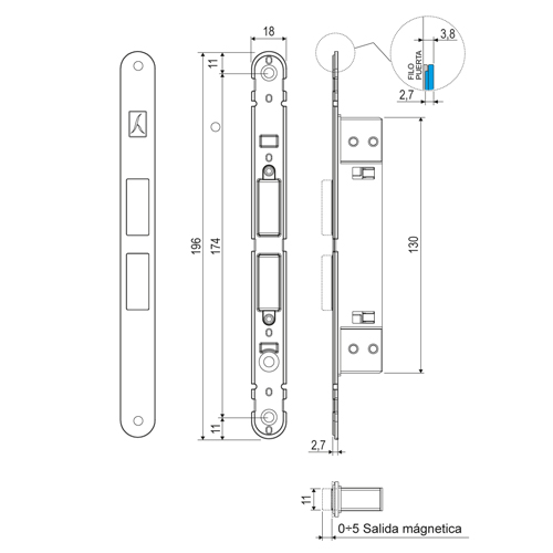 | Cierre magnético ajustable hasta 5 mm. |